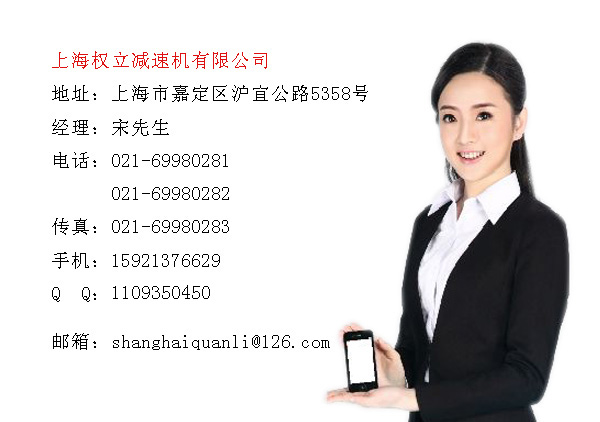 公司名稱:上海權(quán)立減速機(jī)有限公司 公司地址:上海市嘉定區(qū)滬宜公路5358號(hào) 電話:021-69980281 021-69980282 傳真:021-69980283 手機(jī):15921376629 網(wǎng)址: